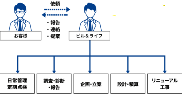 ビルや建物の長寿命化につながる、建物の総合管理を行います。