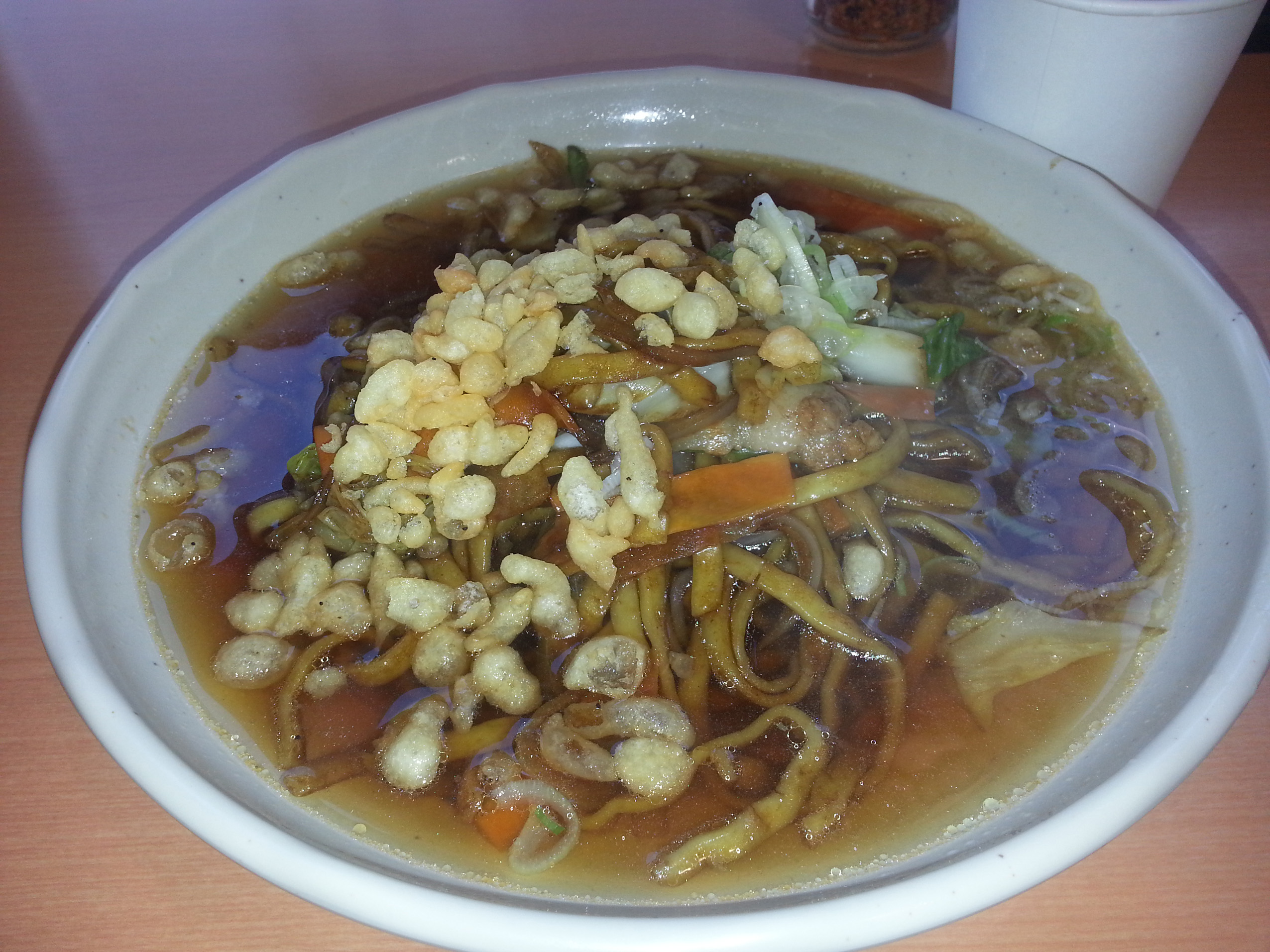 私の想像では、焼きそばのソースを薄めたつゆに焼きそばが浸かっていて