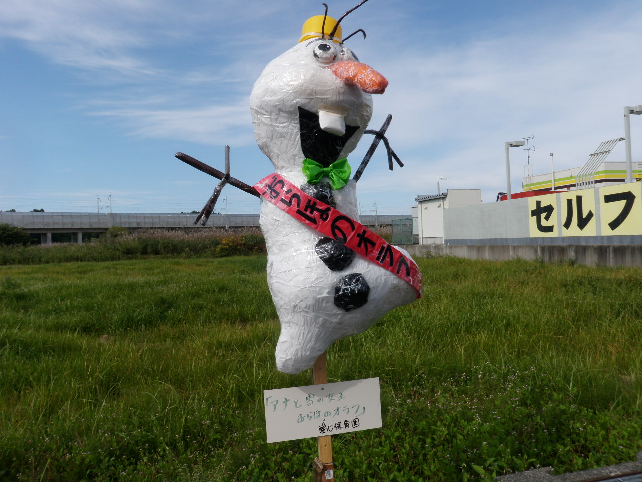 そこには、「かかしロード280」と掲げられたのぼりと、めずらしい「かかし」が