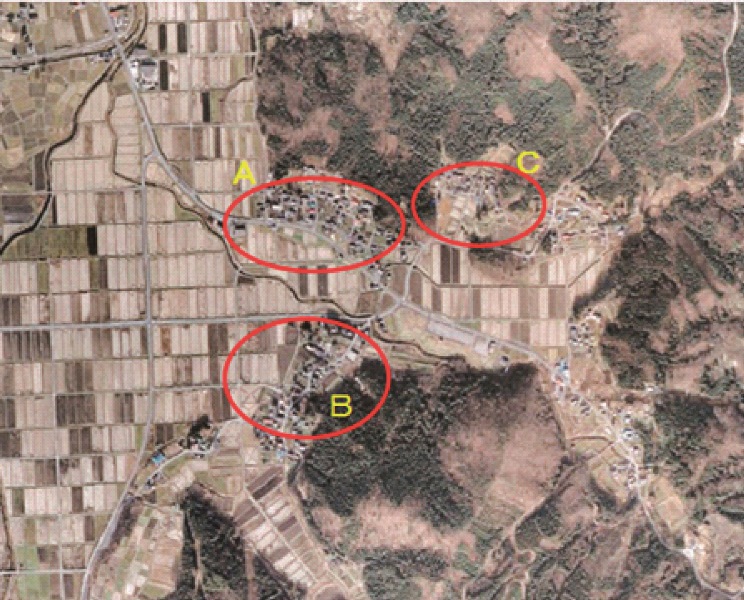 被害の大きい地域は1km程度の狭い範囲で集中していました。